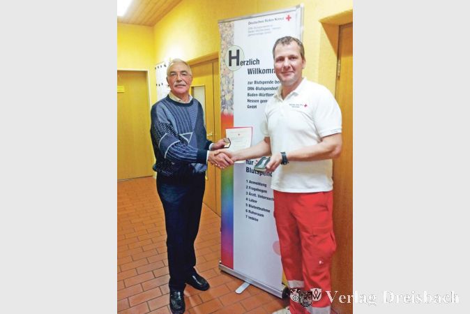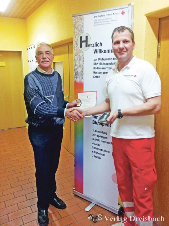 Auch Ehrungen für langjährige Spender standen an. Ausgezeichnet mit einer Ehrennadel und einer Urkunde für die 10. Spende wurde Uwe Schabel. Außerdem wurden Erika Nauheimer, Markus Radtke, Dieter Henninger und Herbert Schulze für die 25. Spende geehrt. Weiterhin ausgezeichnet wurden Eckehard Scheuer und Karl- Heinz Kümmeth für die 50. Spende. Eine große Ehrung für die 100. Spende konnte Reimund Nix feiern. Bereitschaftsleiter Peter Treml überreichte eine Urkunde, eine goldene Ehrennadel, eine Flasche Sekt sowie eine mit Namen gravierte Uhr als Dankeschön.