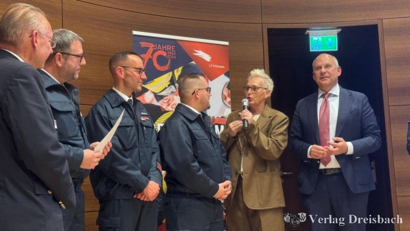 Die feierliche Verleihung fand in der Zentrale der Sparda‑Bank Hessen eG im Frankfurter Europaviertel vor rund 80 Gästen statt. Insgesamt wurden vier Freiwillige Feuerwehren im Rahmen dieses Wettbewerbs geehrt - jede in einer der Kategorie "Krisenkommunikation", "Mitgliedergewinnung und Inklusion", "Bürgerinformation und Stärkung der Krisenresilienz" bzw. "Anerkennung durch Bürger:innen". Hessens Innenminister Prof. Dr. Roman Poseck und der Präsident des Landesfeuerwehrverbandes Hessen Nobert Fischer und gratulierten den Preisträgerinnen und Preisträgern persönlich.