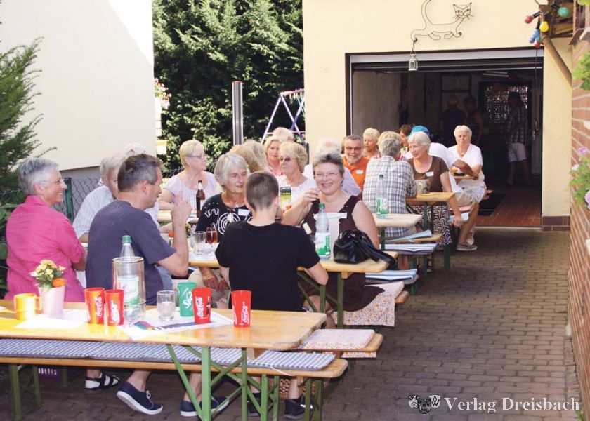 Ab 16 Uhr ging’s los, bei – bono bonum – schönstem Sommerwetter. Mehr als 50 Nachbarn kamen zusammen und bekamen ein Namensschild zur Begrüßung. „Sie habe ich auch schon gesehen, wo wohnen Sie denn“, war der wohl meist gesprochene Satz an diesem Abend. Denn obschon zahlreiche Anwohner bereits viele Jahre im „Ring“ zu Hause sind, kommen doch immer wieder neue Nachbarn dazu. In angenehmer Atmosphäre wurde über vergangene und kommende Zeiten geplaudert und man war sich einig, dass das Hoffest im Hölderlinring zu einer festen Einrichtung werden soll.