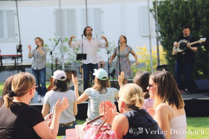 Umrahmt wurde das wunderbare Fest von der Musik der sympathisch-dynamischen Frankfurter Band „Schall und Bauch“ mit aktueller Deutsch-Rock/Pop-Musik, wie etwa von Revolverheld, Frida Gold, Christina Stürmer, Wir sind Helden, Andreas Bourani oder Joris. Da wurde gerne mitgesungen und geklatscht, die Stimmung unter den Gästen war nicht nur eines tollen Sommerfestes würdig – sie reichte samt großartigem Wetter auch locker für das diesjährige „Doppelfest“ in der Siedlung.