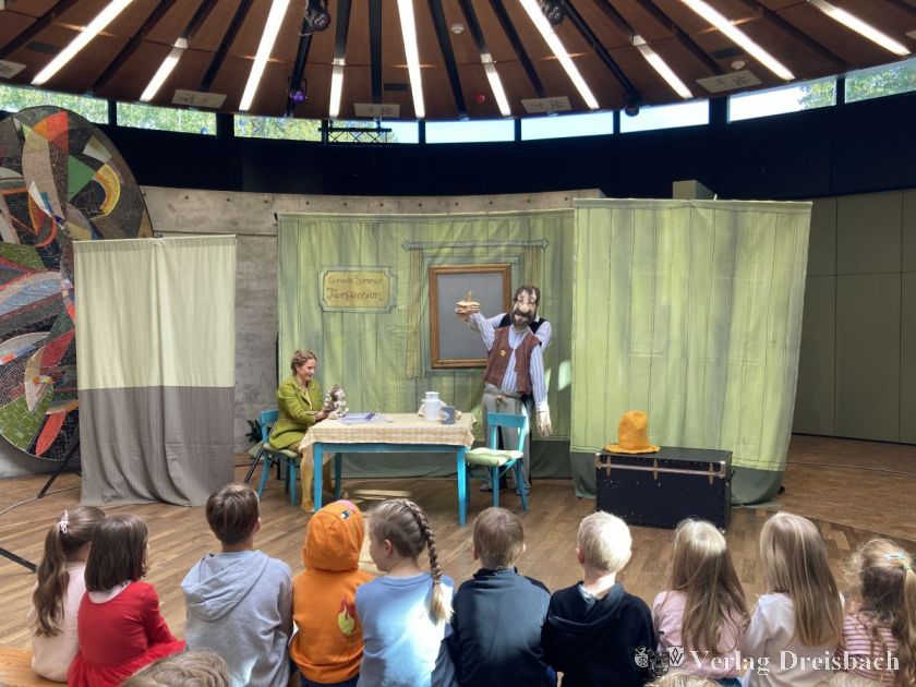 Das Programm der Kinderkulturwoche richtet sich hauptsächlich an Schulkinder. Aber auch für die Kleinen ab drei Jahren gab es einen Programmpunkt. Anastassia Tanopoulou hatte das Theater con Cuore in die Stadthalle nach Hattersheim eingeladen. Stefan und Virginia Maatz zeigten „Wie Findus zu Petterson kam“. Sie spielten die Geschichte mit Großfiguren im Foyer der Stadthalle. Geschätzt 40 Kinder waren anwesend, aber auch viele Erwachsene. Schon die Kleinen wussten ganz genau, wie man sich im Theater verhält: ruhig sein, nicht umherlaufen, nicht essen und trinken. Und ja, lautes Lachen war ausdrücklich erlaubt, wie Anastassia Tanopoulou bei der Begrüßung betonte. Eingebettet in die Geschichte von Opa Sven, der in die Tierpension von Gundula Sammer kommt und seinen Kater sucht, wurde auf der Bühne dargestellt, wie der alte Petterson zu seinem Kater Findus kam. Petterson nimmt den Kater auf und bereitet zur Feier des Tages einen Kuchen zu. Das Zusammenspiel der Figuren wurde durch die Darstellung von alltäglichen Situationen so kindgerecht gezeigt, dass auch die Kleinsten auf ihre Kosten kamen. Aber genauso nett war das Stück für Erwachsende anzusehen, denn durch kleine, eingefügte Bemerkungen kam auch für sie der Humor nicht zu kurz.