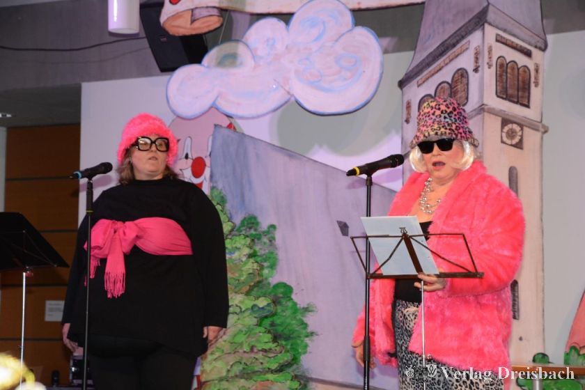 Karola Bauer und Ulrike Göbel kamen dann noch als Oma und Enkelin auf die närrische Bühne, bevor zum Schluss das Männerballett, Lukas und Michael Lessig, Dominic Hacker, Yannick Hacker-Püsch, Florian Kleine, Sebastian Böhler und Keven Röder, als Stewardessen zur Musik „Über den Wolken“ nochmals den Saal zum Toben brachte.