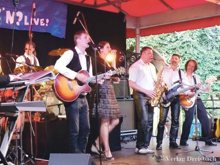 Apropos Erfolg. Mit der Band „Was’n?“ hatte der FC am Samstag ebenfalls einen Volltreffer gelandet. Die sechsköpfige Formation hatte bereits beim ersten Sommerfest des FC groß aufgespielt und legte auch in der zweiten Auflage einen Supergig auf die Bühne. Dank guter Beziehungen des FC zu Bandmitglied Werner Littau, kam das Engagement zustande. „Die Band hat uns einen Superpreis gemacht“, verrät Günter Marx, „sonst hätten wir uns eine so bekannte und tolle Truppe nicht leisten können“. Andi Bals am Bass, Gitarrist Martin Schilling, Sängerin Sarah Ruppert und Sänger Flo Ruppert, Werner Littau und Drummer Jörg Wintermeier legten los wie die Feuerwehr und präsentierten Hit um Hit in Superspiellaune. Kein Wunder, dass die tolle Stimmung auf der Bühne das Publikum zu wahren Beifallsstürmen hinriss. Ob Rocky Horror Picture Show oder die Blues Brothers – Was’n?” überzeugten mit fantastischen Showeinlagen, sattem Sound und immer rundum gelungenen Coverversionen, von denen die Gäste im vollbesetzten Posthof gar nicht genug bekommen konnten.