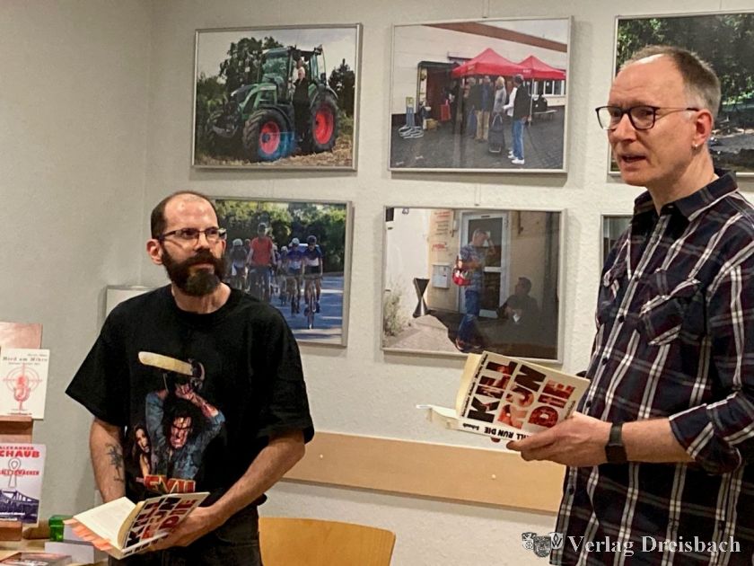 Die Autoren Marc Rybicki und Alexander Schaub sind den Krimi-Fans in Hattersheim schon wohlbekannt. Bereits zum vierten Mal folgten sie der Einladung von Einrichtungsleiter Klaus Störch und dessen Team in das Haus Sankt Martin am Autoberg, der Facheinrichtung für wohnungslose Menschen.