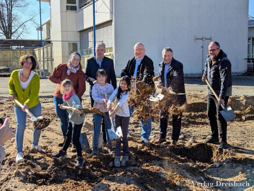 Bürgermeister Klaus Schindling war ebenfalls beim Spatenstich dabei: „Ich bin dem Kreis dankbar für die Erweiterung der Schule. Mit dem Neubau wird die kindliche Bildung im Grundschulbereich unserer Ortsteile weiter verbessert und die Ganztagsbetreuung für alle Schülerinnen und Schüler ausgebaut.“