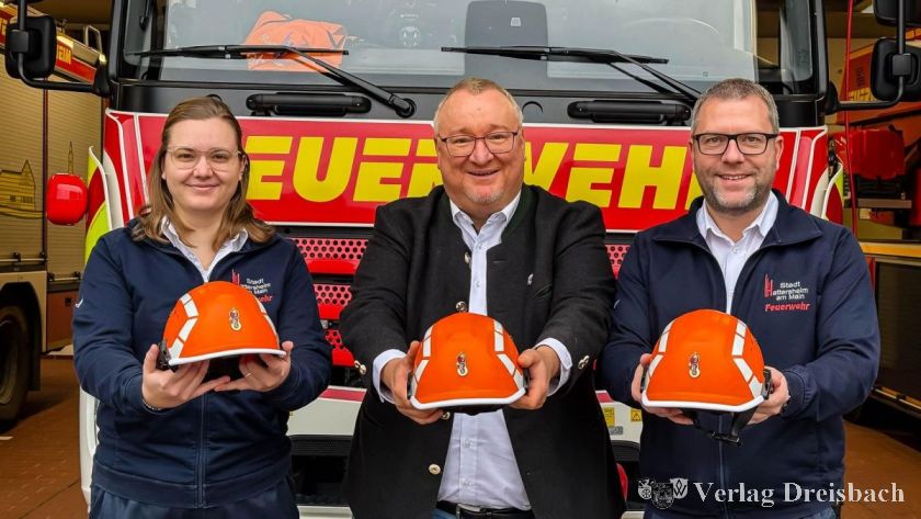 Bürgermeister Klaus Schindling überreichte die Helme an Stadtbrandinspektor David Tisold und Stadtjugendfeuerwehrwartin Svenja Baum. Bereits bei den letzten Übungen des Vorjahres verteilte man die Helme an die Mitglieder der drei Jugendfeuerwehren, die sie sofort im Ausbildungsdienst einsetzten.