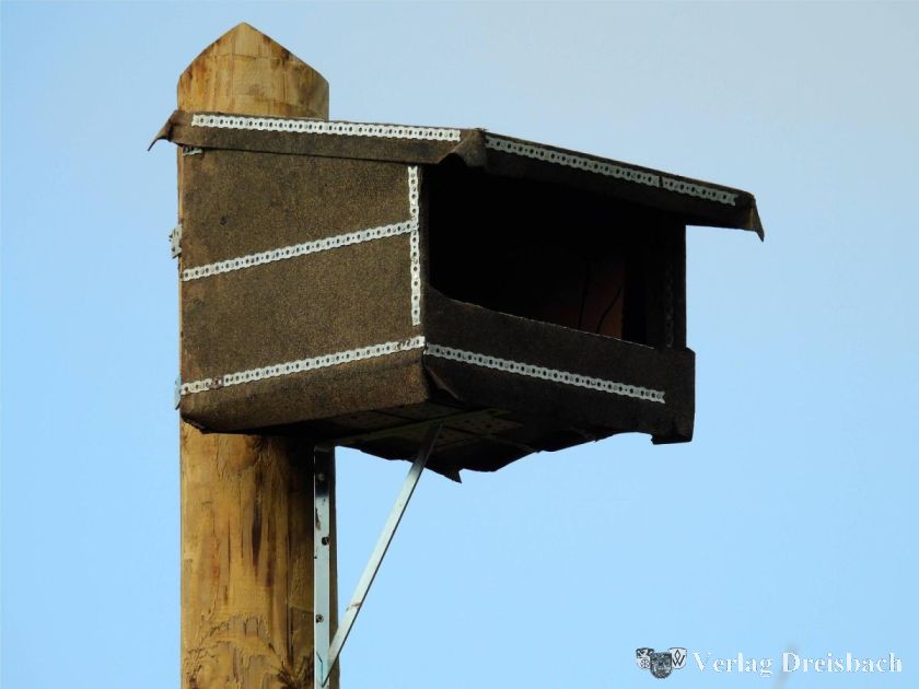 Jetzt war höchste Eile geboten. Turmfalken beginnen Mitte März mit ihrer Balz und legen ab Mitte April die ersten Eier. Die Jungen verlassen Ende Juli/Anfang August das Nest. Sollte der Nistbaum mit dem Kasten in dieser Zeit umstürzen, wäre die Brut verloren.