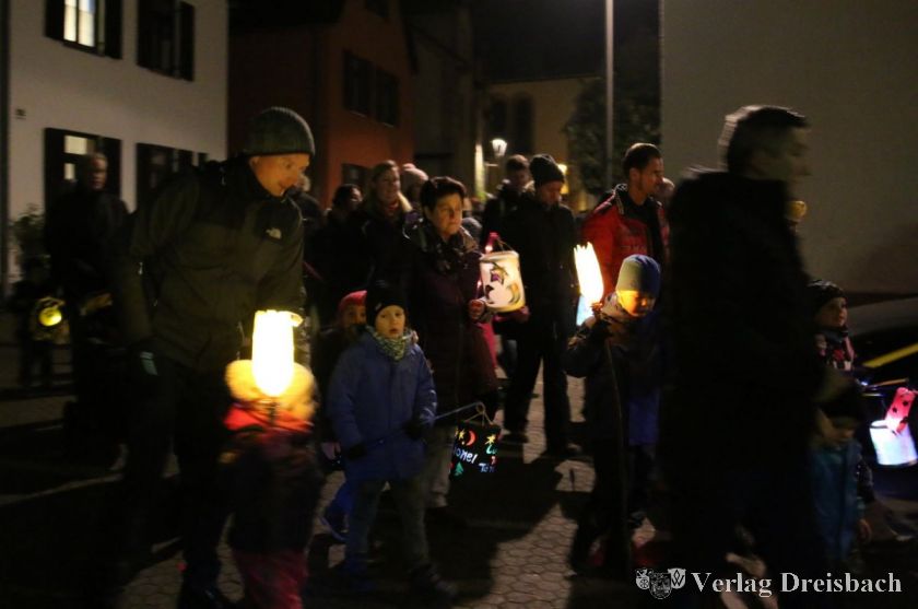 „Habt ihr denn alle auch eine Laterne mitgebracht?“, fragte er in der Kirche vom Altar aus. Vielstimmig und froh bestätigten ihm das die Kinder. „Dann macht die mal alle an und haltet sie hoch!“, forderte er sie auf. Gemeinsam wurde mit hochgehaltenen Laternen gebetet.