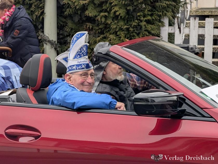 Auch eine andere Nachbarstadt zeigte wieder Präsenz: Simeon Dimitriadis und Bernd Seel vom dortigen Generalstab grüßten aus dem Cabrio und warfen munter Süßigkeiten unter das Volk.