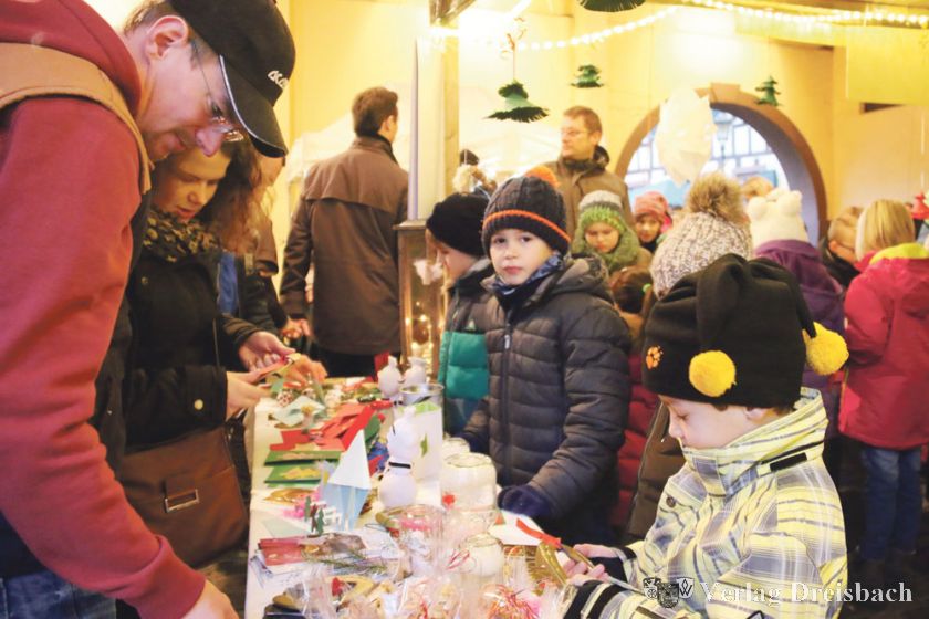 Wie schon in den letzten Jahren hatte man beim KulturForum auch an die kleinen, vielleicht vom Laufen und den vielen Eindrücken müde gewordenen Marktbesucher gedacht. Im Raum 1 des Vereins für Volksbildung konnten mit Mama oder Papa – oder auch ganz alleine – dann in aller Ruhe schöne Weihnachtsbäume gebastelt werden. Für alle Altersgruppen geöffnet war auch in diesem Jahr wieder das „Adventscafé“ im Barbarahaus. Die Mitarbeiter der Stadtbücherei hatten einen „Bücherflohmarkt“ vor dem Eingang aufgebaut, bei dem Bücher für 1 Euro zu erstehen waren.