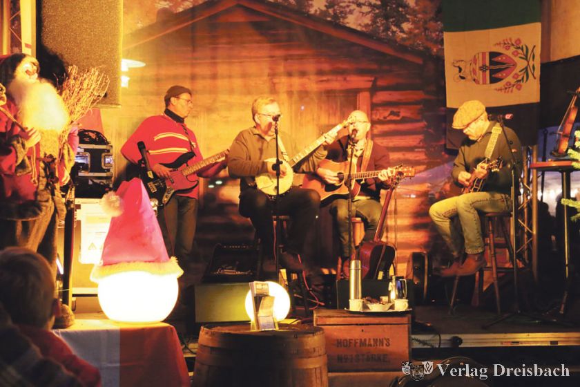In Weihnachtsmann-Kostümen waren ab 18 Uhr die Unterliederbacher Weihnachtsbläser auf dem Markt unterwegs, sie brachten Kinder zum Staunen und Erwachsene zum Mitsummen.