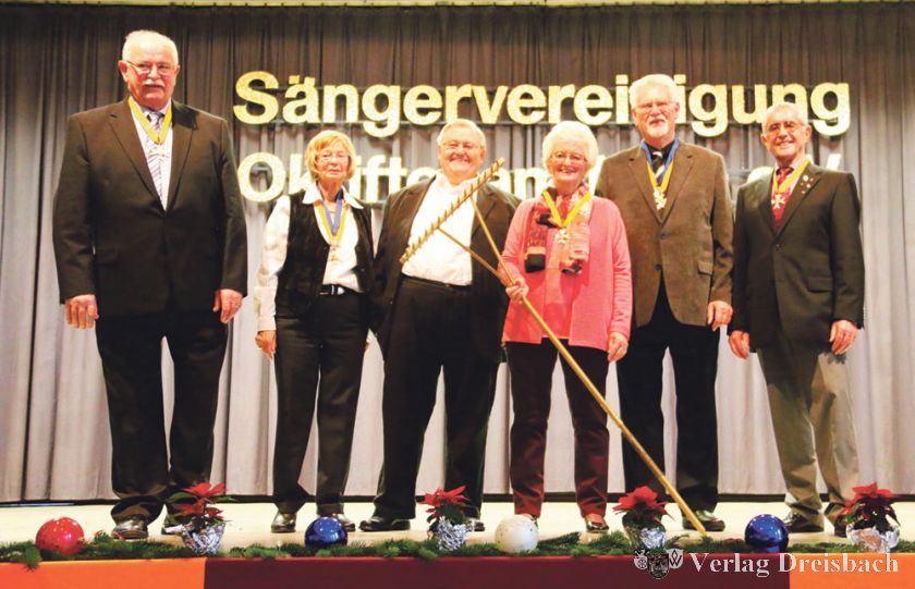 Auch Helgard Ritter war offensichtlich beeindruckt und bewegt von so viel lobenden und würdigenden Worten, es hielt sie nicht an ihrem Platz zwischen den Wahlräten und Michael Mook, sie trat spontan an den Bühnenrand im Haus der Vereine und sprach „ihre“ Sänger an: „Jetzt muss ich auch einmal was sagen. All das, was ihr hier aufgezählt habt, das mach‘ ich gern und das werde ich auch weiter machen – für euch und für mein Okriftel. Hier bin ich gern und hier will ich auch bleiben!“