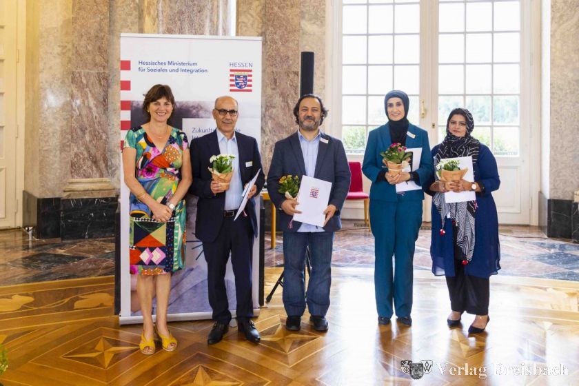 Im Rahmen eines Festakts im Schloss Biebrich hat Staatsekretärin Anne Janz 25 Integrationslotsinnen und -lotsen für ihr ehrenamtliches Engagement gedankt, die stellvertretend für ihre Projektteams nach Wiesbaden kamen. Auch Abdulhai Asisi aus Hattersheim war mit dabei.