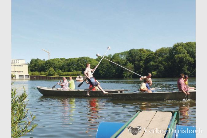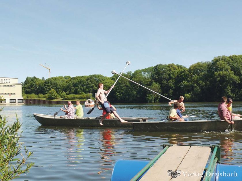 Es ist nämlich gar nicht so einfach, die Boote ordentlich „in Stellung“ zu bringen, und damit allen Teilnehmern die möglichst gleichen Voraussetzungen für den entscheidenden Stoß zu schaffen, der den Gegner aus dem Gleichgewicht bringt und ins kühle Nass befördert.