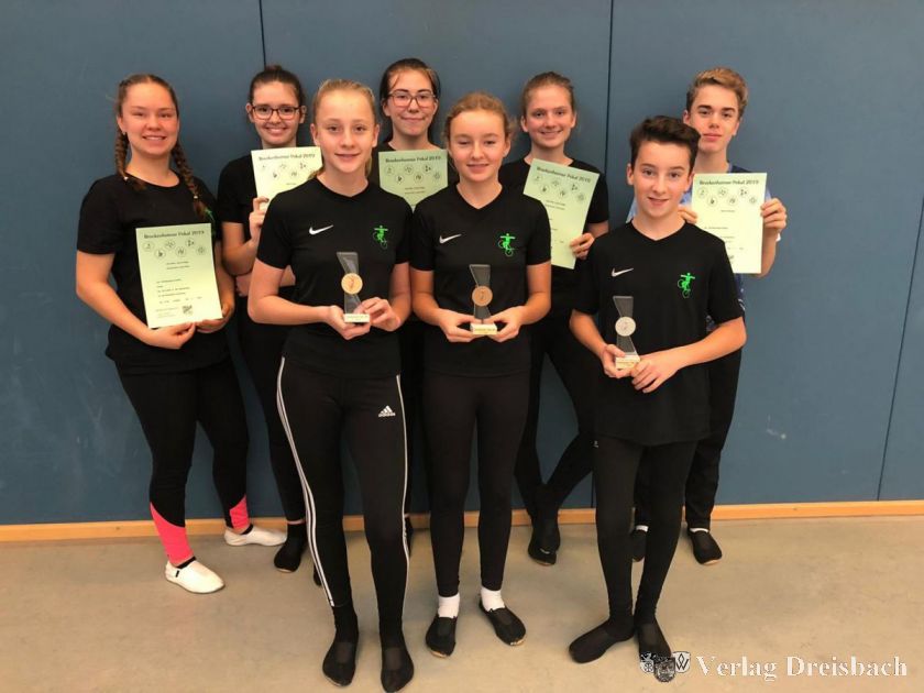 (Hinten, von links:) Aline Mohr, Hannah Keck, Jasmin Rogge, Lorena Baier, Julien de Boysere sowie (vorn, von links:) Maja Krause, Anna Lötzke und Florian Sosic zeigten beim 36. Bezirkspokal in Breckenheim starke Leistungen.