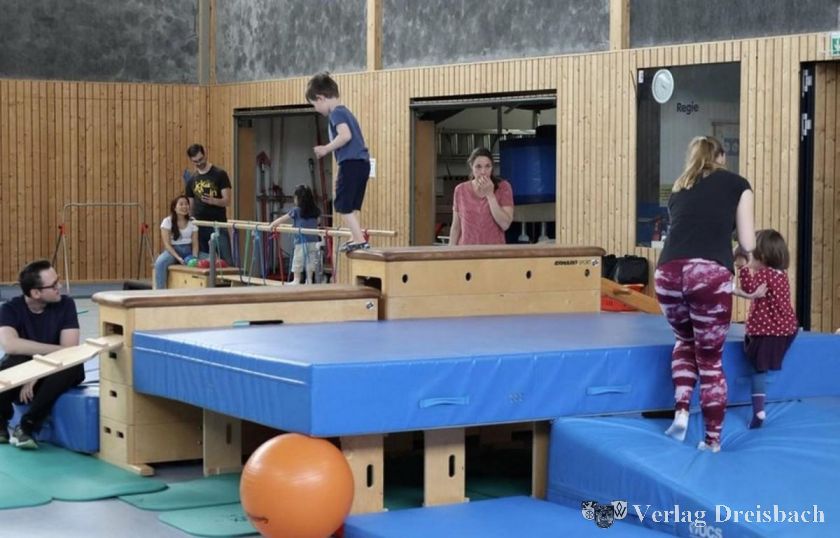Nach dem Begrüßungslied und einem Warm-Up stand den Kindern eine riesige Auswahl an Matten, Treppen, Tunneln, Hindernissen oder Balancierstationen zur Verfügung. Mit kleinen Snacks, die die Teilnehmer selbst mitbringen konnten und Kaffee, den der Verein spendete, konnten die Familien in unserem Mehrzweckraum sich eine kleine Pause von dem vielen Turnen gönnen.