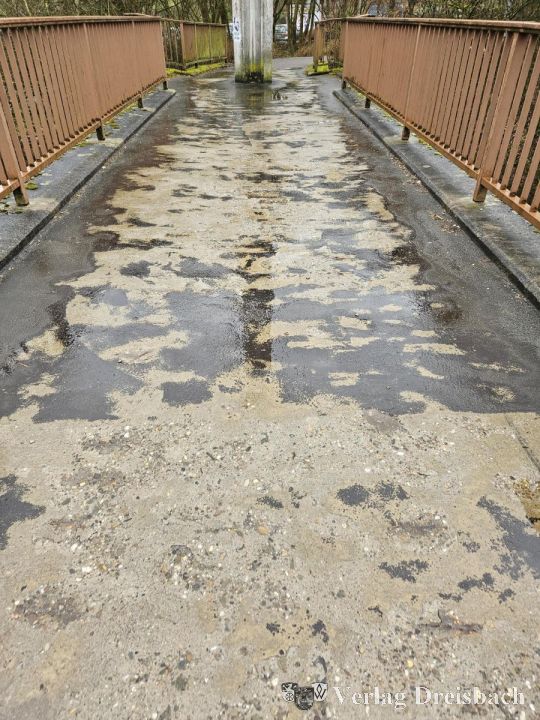 Im Gemeindevorstand hat man nun entschieden, dass hier die Gemeinde zunächst in Eigenregie handeln muss: Mitarbeiter des Bauhofes werden in der zweiten Woche der Osterferien den Belag der Brücke provisorisch Instandsetzen und die Abplatzungen zuspachteln, um vorläufig wieder eine ebene Fläche herzustellen. „Die Arbeiten sollen an drei Tagen in der zweiten Osterferienwoche stattfinden, da die Brücke hauptsächlich von Schülerinnen und Schülern genutzt wird“, so der zuständige Fachbereichsleiter. Abgesperrt wird dann jeweils der Bereich, an dem gearbeitet wird, so dass einzelne Fußgängerinnen und Fußgänger sowie Fahrradfahrende weiterhin passieren können.