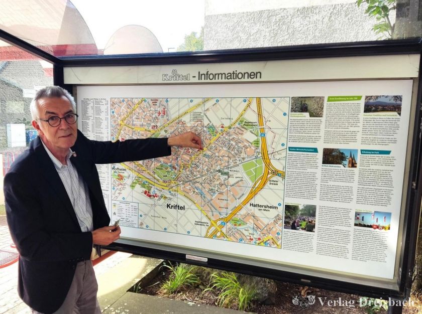 In sieben Schaukästen im Ortsgebiet können sich Gäste der Gemeinde, aber auch Krifteler Bürgerinnen und Bürger auf Ortsplänen einen Überblick über die Gemeinde, Straßen und Gebäude sowie Highlights und Sehenswürdigkeiten verschaffen. „Da die Ortspläne in die Jahre gekommen und zum Teil bereits an Farbe verloren hatten, haben wir sie erneuert und im Zuge dessen aktualisiert und optisch modernisiert“, berichtet der Erste Beigeordnete Franz Jirasek, der jetzt im Schaukasten vor dem Rat- und Bürgerhaus symbolisch den Standort-Pin aufklebte.