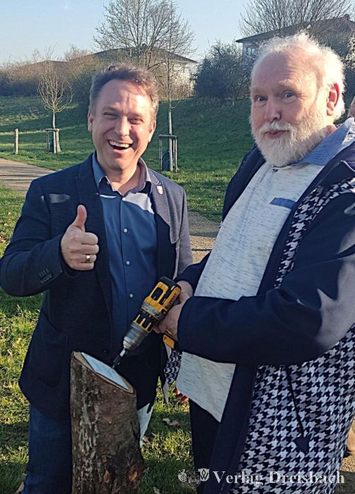 Vor jedem Baum sind an Holzpfosten Schilder angebracht, auf denen die Spenderinnen und Spender, wenn sie dies wünschen, namentlich aufgeführt sind. Besonders gut kam an, dass die Spenderinnen und Spender im Rahmen des Danke-Treffens selbst Hand anlegen und die Schilder vor „ihrem“ Spendenbaum mit einem Akkuschrauber ins Holz schrauben konnten.