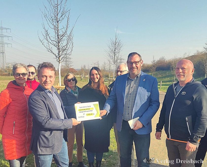 „Eine tolle Summe, eine wichtige Aktion für das Leben in unserem schönen Kriftel und unsere Umwelt“, finden Bürgermeister Christian Seitz und der Erste Beigeordnete Martin Mohr. Sie bedankten sich vergangene Woche persönlich bei den neuen Spenderinnen und Spendern bei einer „Danke-Veranstaltung“ im Ziegeleipark: Wie im Dezember 2025 konnten sich nun erneut die aktuellen Baumpatinnen und Baumpaten, die Rathausspitze und die zuständigen Mitarbeitenden des Bauamtes vor Ort die Pflanzungen anschauen und sich austauschen.