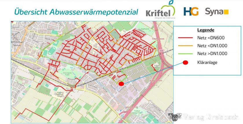 Vor allem habe man bei der Potenzialanalyse für Kriftel das Abwasser (Kanalnetz und Kläranlage) sowie die Umgebungsluft als vielversprechend identifiziert. Das Abwasser sei eines der größten lokalen Potenziale, über die man in der Gemeinde verfügt.