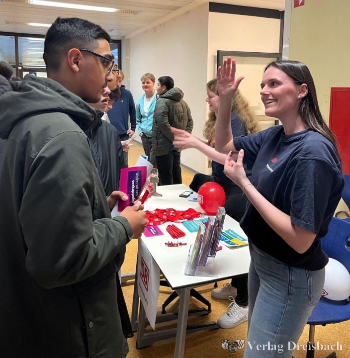 Genauso wenig wie die Deutsche Bahn: Sie bietet über 50 Ausbildungsberufe an. Gerade im IT-Bereich sei man besonders gut aufgestellt, das interessiere die jungen Besucher am meisten. Zain aus der R9 will Lokführer werden „was Großes bewegen“, wie er betonte. Lea Boch, HR-Beraterin, erklärte den Jungs erstmal „ein Stück Oberleitung“. Die Eltern müssten die Kinder begeistern, den richtigen Beruf zu ergreifen, findet sie. Holger Menge, Bauingenieur und Vater von Marie aus der G9a, begrüßte das neue Messekonzept: So würden Kinder an die Hand genommen. Seine Tochter wisse schon, was sie will: Schreinerin. Da sehe man, was man getan habe.
