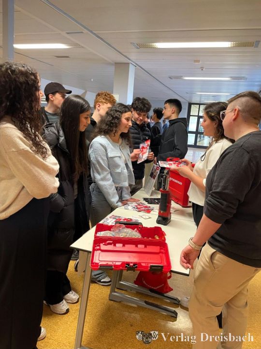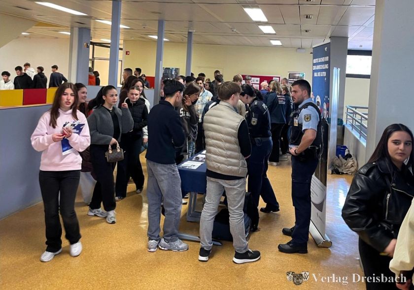 Am Stand von Werkzeughersteller Rothenberger hatte sich eine Schülertraube gebildet. Dabei waren drei Mädchen, die sich für technische Berufe interessieren: Maria, Nesrin und Asiya aus der H8b. Mit Berufsberaterin Laura Cozzolino haben sie „alles abgecheckt“. Auch das Interesse an der Bundespolizei im ersten Stock war groß. Stephanie Ullmann erklärte ihren jungen Zuhörern geduldig, was man alles mit Realschulabschluss werden kann. Die Polizei sei breit aufgestellt, erklärt sie, man habe mittlerweile sogar eine Social-Media-Redaktion. Das hörte Eitan, 14, aus der R9a gerne. Sein Ziel: GSG 9. Er habe Videos gesehen auf YouTube, wie ein Flugzeug gerettet wurde. Es müsse ja nicht gleich die Eliteeinheit sein, erklärt Stephanie Ullmann. „Mädchen wollen übrigens meistens in die Pferdestaffel“, erzählte sie. 24 Stellen seien da. Über mangelndes Interesse könne sie nicht klagen.