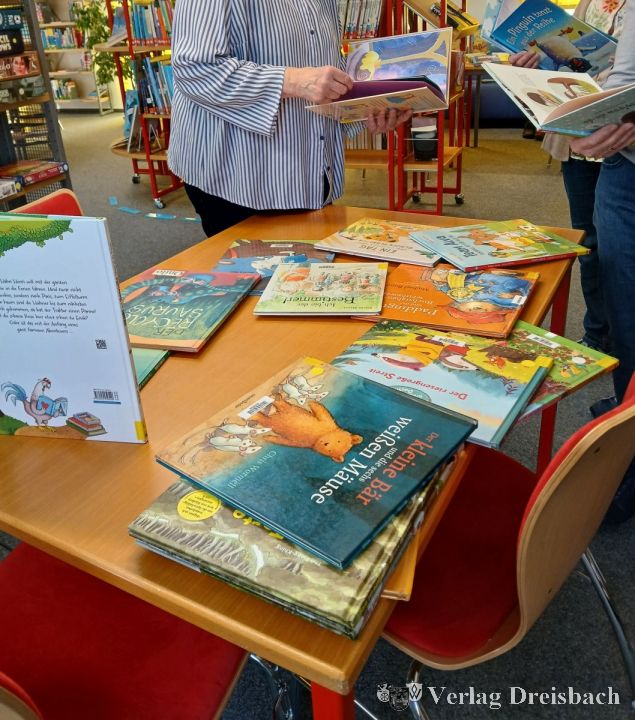 Auf Büchertischen lagen besonders empfehlenswerte Bücher bereit: für Klein- und Kindergartenkinder und für Kinder im Grundschulalter. Die Teilnehmerinnen und Teilnehmer konnten sich Bücher ansehen und eines aussuchen, in einer gemütlichen Leseecke einen Abschnitt einüben und dann allen vortragen. „Das war toll, alle haben das Gelernte direkt angewendet und zuzuhören war für alle Beteiligten ein Genuss“, schwärmt Eva Momma.