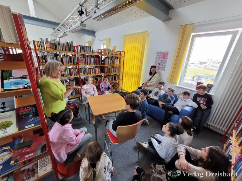 Im Anschluss wurde die Gruppe von der neuen Leiterin der Gemeindebücherei, Eva-Maria Momma, und Mitgliedern des Bücherei-Teams herzlich begrüßt. Eva-Maria Momma, die bis vor kurzem noch an der Lindenschule Kriftel unterrichtet hat, kannte einiger der Kinder noch aus der Schule und war begeistert über das große Interesse und das Wissen der Teilnehmer des Kinderbeirats in Bezug auf die gut ausgestattete und sehr beliebte Bücherei.