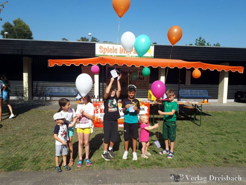 Das hat schon Tradition beim Förderverein der Krifteler Handballer: Von Anfang an ist die Gruppe dafür zuständig, bei den „Spielen im Park“ die Luftballons aufzublasen und vielen glücklichen Kindern zu übergeben. So auch dieses Mal bei großer Hitze im Freizeitpark. Drei Stunden lang war eine Menge los am Stand des Fördervereins. Insgesamt stiegen vermutlich um die 250 Ballons mit einer Postkarte in die Lüfte. „Wir schreiben dem Bürgermeister eine Karte“ – so hatten die Handballer für die Aktion geworben. Denn das Prinzip ist einfach: Wer den Krifteler Ballon findet, kann die Karte an Bürgermeister Christian Seitz zurückschicken. Die Flugobjekte, die die weiteste Reise zurückgelegt haben, erhalten dann bei der Abschlussveranstaltung der „Spiele im Park“ Ende des Jahres tolle Preise. Wie die Kinder und ihre Eltern am Sonntag erzählten, sei ein Ballon in den vergangenen Jahren schon gut 200 Kilometer weit geflogen. Fördervereins-Vorsitzender Uwe Seeharsch und sein Stellvertreter Frank Weiner hatten am Stand alle Hände voll zu tun, um den Kindern beim Ausfüllen, beim Knoten oder Befestigen der Karten zu helfen. Vor allem aber ließen sie manche Augen strahlen, da viele Mädchen und Jungen noch einen eigenen Ballon mit nach Hause nehmen durften. Es war wieder eine gelungene Aktion, die zeigt, dass der Luftballonwettbewerb bei den „Spielen im Park“ nicht wegzudenken ist. Und die Handballer-Förderer werden auch nächstes Jahr gerne wieder hunderte Kinderherzen höher schlagen lassen.