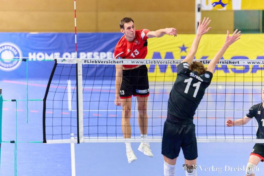 Allerdings erwiesen sich die Gastgeber als der erwartete schwere Brocken. Sie begannen das Spiel wesentlich effektiver im Angriff als die Krifteler. Zudem passte die Block- Feldabwehr bei den Gästen noch nicht so ganz. Lediglich Diagonalangreifer Pascal Eichler war es zu verdanken, dass die Krifteler keinem großen Rückstand hinterherlaufen mussten. Er erzielte zehn Punkte bei 13 Versuchen. Trotzdem wuchs der Rückstand auf 15:19 an. Trainer Schön brachte mit einem Doppelwechsel frischen Wind aufs Parkett. Mit Zuspieler Jorris Müller und Diagonalangreifer Nils Weber sowie starken Angaben von Jannik Weber verkürzten die Krifteler den Rückstand auf 21:22. Die TuS glich aus und hatte beim 24:23 sogar den ersten Satzball. Schwaig wehrte diesen ab, genauso wie die folgenden vier. Prompt verdienten sich die Gastgeber einen eigenen, der dank einer überragenden Reaktion von Florian Ruhm abgewehrt wurde. Philip Büchi kam aufs Feld und sorgte mit einem guten Service und starken Abwehr für den nächsten Satzball, aber erst der nächste wurde Kriftel verwertete nun aber den siebten Satzball zum hart erarbeiteten 31:29.