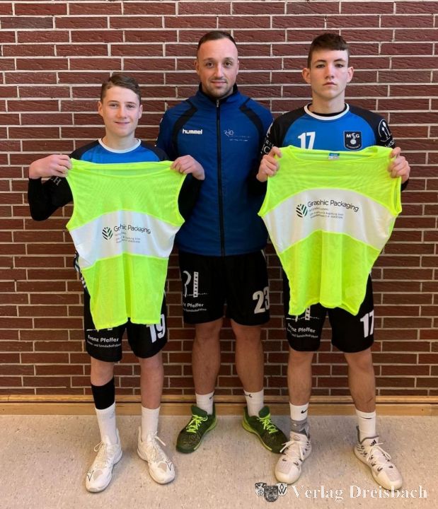 Das war eine schöne Überraschung für die beiden Jugendspieler, die bei den Männern der MSG Schwarzbach II am Samstag im Einsatz waren. Denn sie behielten im Spiel gegen Bad Camberg nicht nur die beiden Punkte im Spitzenspiel zu Hause, sie nahmen auch eine schöne Spende von ihrem Mitspieler Melvyn Irmer entgegen. Der langjährige Handballer hat der Jugendabteilung 50 Leibchen vor allem für den Trainingsbetrieb geschenkt. „Die Jugendarbeit ist mir wichtig, schließlich wurde ich hier in Kriftel auch vor vielen Jahren prima ausgebildet“, sagt Irmer, der die Spende über seinen Arbeitgeber organisiert hat. Irmer ist dort Ausbilder und Logistikleiter und selbst seit fast 30 Jahren aktiv im Handballverein.