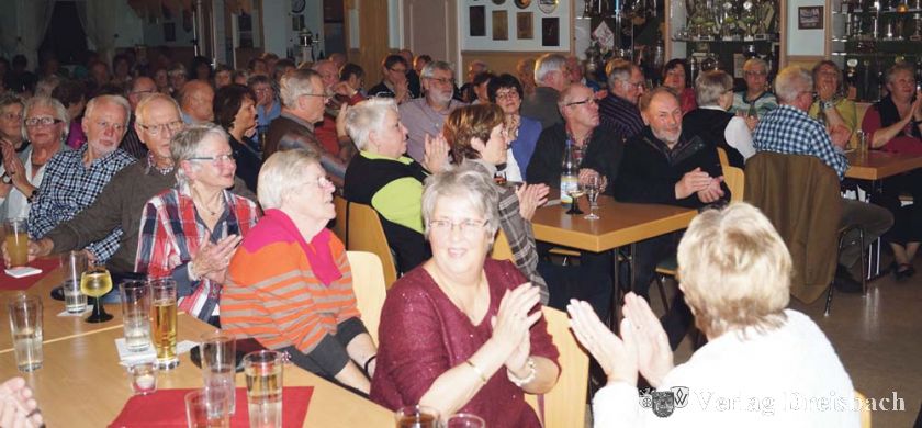 „Was kann der Sigismund dafür, dass er so schön ist“, intonierte Zimmer und Riederer setzte mit dem Lied „Sexappeal“ gleich noch einen oben drauf. Die Stimmung war prächtig, nicht zuletzt weil der RVB, seinen Besuchern ein ganzes Arrangement geboten hatte. So wurden nicht nur Zimmer und Riederer auf der Bühne serviert, sondern auch Wiener Schnitzel mit Salat und Brot auf den Tischen und das, so Dietmar Meinlschmidt, 1. Vorsitzender, all inclusive. Nur der Wein und was es sonst noch Flüssiges gab, ging extra.