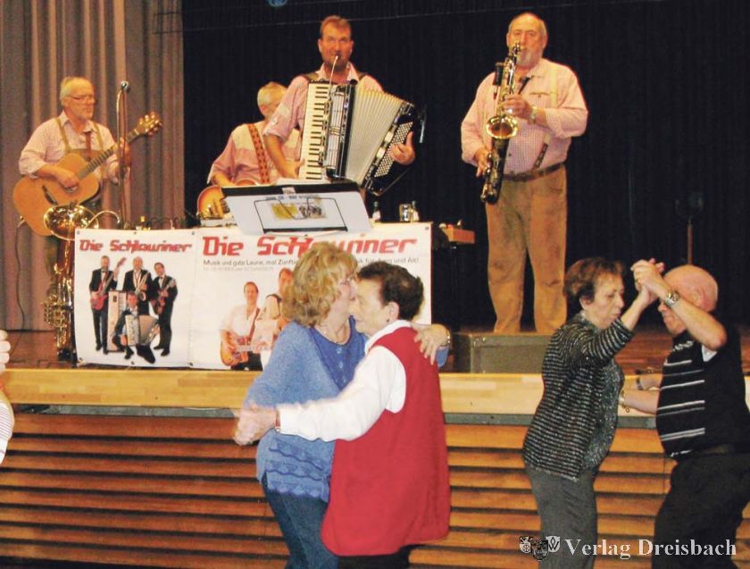 Die Schlawiner, die ihrem Namen alle Ehre machten spielten „In München steht ein Hofbräuhaus“ und auch alle anderen gern gehörten Bierzelt-Klassiker rauf und runter. Die Gäste hatten sich in Dirndl und Janker geworfen und bevölkerten sofort die Tanzfläche und das blieb auch den ganzen Nachmittag so. Es ist erstaunlich, mit wie viel Elan die älteren Leute noch das Tanzbein schwingen, dahinter können sich viele jüngere verstecken.
