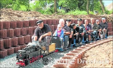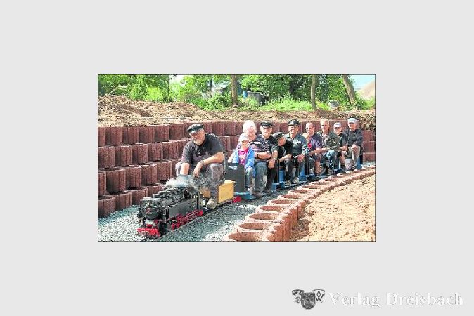 Im Vorfeld der Veranstaltung hatten die ESVler den geplanten 2. Bauabschnitt zur Grillhütte fertiggestellt. Über 400 Pflanzsteine hatte man gestellt und damit einen künstlichen Damm errichtet, an dem die Züge nun auf der um 300 Meter erweiterten Strecke vorbei fahren konnten. In der Endausbaustufe, die allerdings erst in einigen Jahren erreicht sein wird, erklärte Wulle, werde man auf 13 verschiedenen Fahrstrecken das Gelände erkunden können. Bei einer Gleisstrecke von fast vier Kilometern, werden die ESVler dann über die längste Großbahn in Deutschland verfügen.