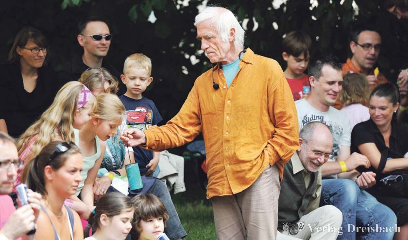 Fredrik Vahle genoss das Wiedersehen und die Rückkehr zur Villa Herrmann, wo er bereits früher Kostproben seiner Kinderlieder zum Besten gegeben hatte. Nur zu gerne mischte er sich unter die Jüngsten im Publikum, um sie zu animieren, gehören doch gerade Bewegungslieder mit Impulsen aus den Lehren von Tai Ji und QiGong zu seinem reichhaltigen Repertoire.