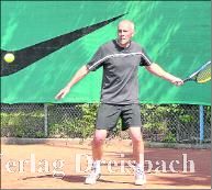 Ein in Top-Besetzung angetretener TC Groß Rohrheim machte ihnen bei sommerlichen Temperaturen das Leben schwer. Nachdem Karl-Heinz Emig und Ernst Engel ihre Einzel verloren hatten, sah es lange nach einem Unentschieden aus. Udo Reinheimer (Bild) konnte sein Einzel sicher mit 6:2 und 6:4 sicher unter Dach und Fach bringen. Sigi Nagl, der sein erstes Match nach langer Verletzungspause bestritt, gewann sein erstes Spiel mit 6:2, das zweite Spiel ging im Tie-Break mit 5:7 denkbar knapp an den Gegner und auch im Champions Tie-Break musste er sich letztendlich nach über zweieinhalb Stunden mit 7:10 geschlagen geben. Zusammen mit Udo Reinheimer gewann er das anschließende Doppel mit 6:2 und 6:3, während sich Gunter Hinkel/Hans Standke mit 2:6 und 5:7 geschlagen geben mussten. Somit lautete der Endstand 9:5 zugunsten der starken Groß Rohrheimer.