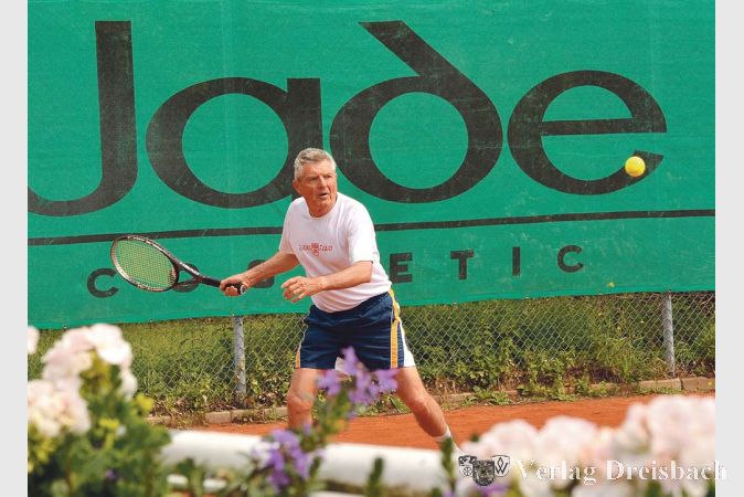 Gut gekämpft und doch verloren, lautete dann doch am Ende das Fazit der einzelnen Begegnungen. Es fehlte einfach das bekannte Quäntchen Glück, denn drei der sechs Begegnungen gingen in den Match-Tiebreak und knapp verloren. Sigi Nagl und Rolf Thöne verloren glatt ihre Matches, während Hans Rump den ersten Satz mit 6:1 gewann, den zweiten in einer dramatischen Begegnung knapp mit 4:6 verlor und dann auch im Match-Tiebreak mit 5:10 unterlag. Lediglich Rudi Isbrecht (Bild) konnte mit 7:5 und 6:3 gegen seinen stark aufspielenden Gegner gewinnen und die ersten Punkte für die SV 07 sichern.
