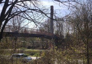 Die Fußgängerbrücke, die im Zuge des Limburger Wegs über die L3011 zum Hochfeld beziehungsweise zur Konrad-Adenauer-Schule führt, hat schon schönere Zeiten gesehen: Überall gibt es Fehlstellen und Abplatzungen in der Betondecke, …